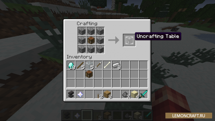 Мод Uncrafting Table добавит в игру новый верстак с помощью которого вы сможете произвести демонтаж предметов на его составляющие. Этот мод понадобиться в том случае, если вы скрафтили предмет, который вам в итоге не пригодился. С этим модом вы можете разобрать данный предмет, тем самым вернув нужные вам ресурсы.